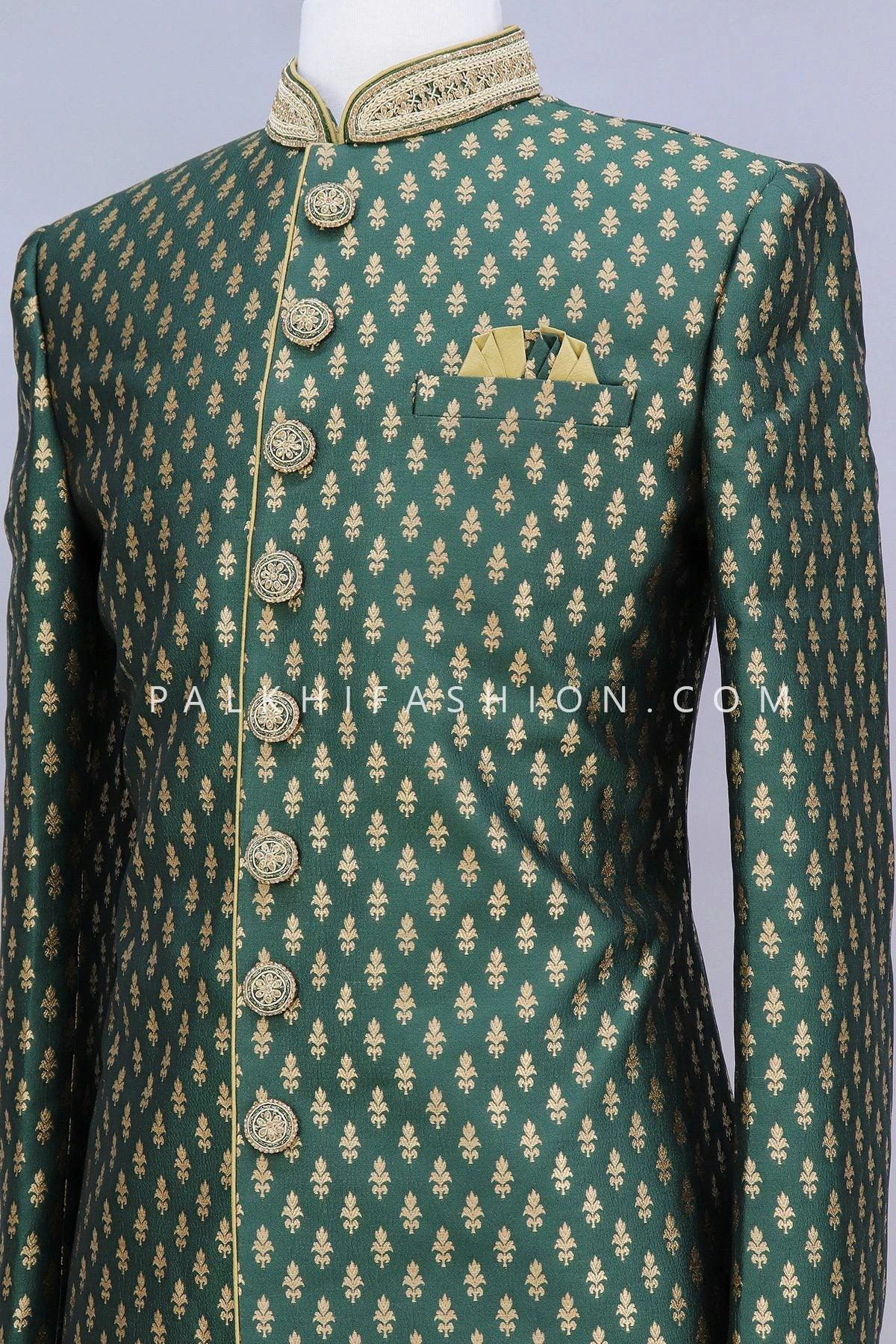 Dark Green Silk Indo-Western With Handwork-Palkhi Fashion