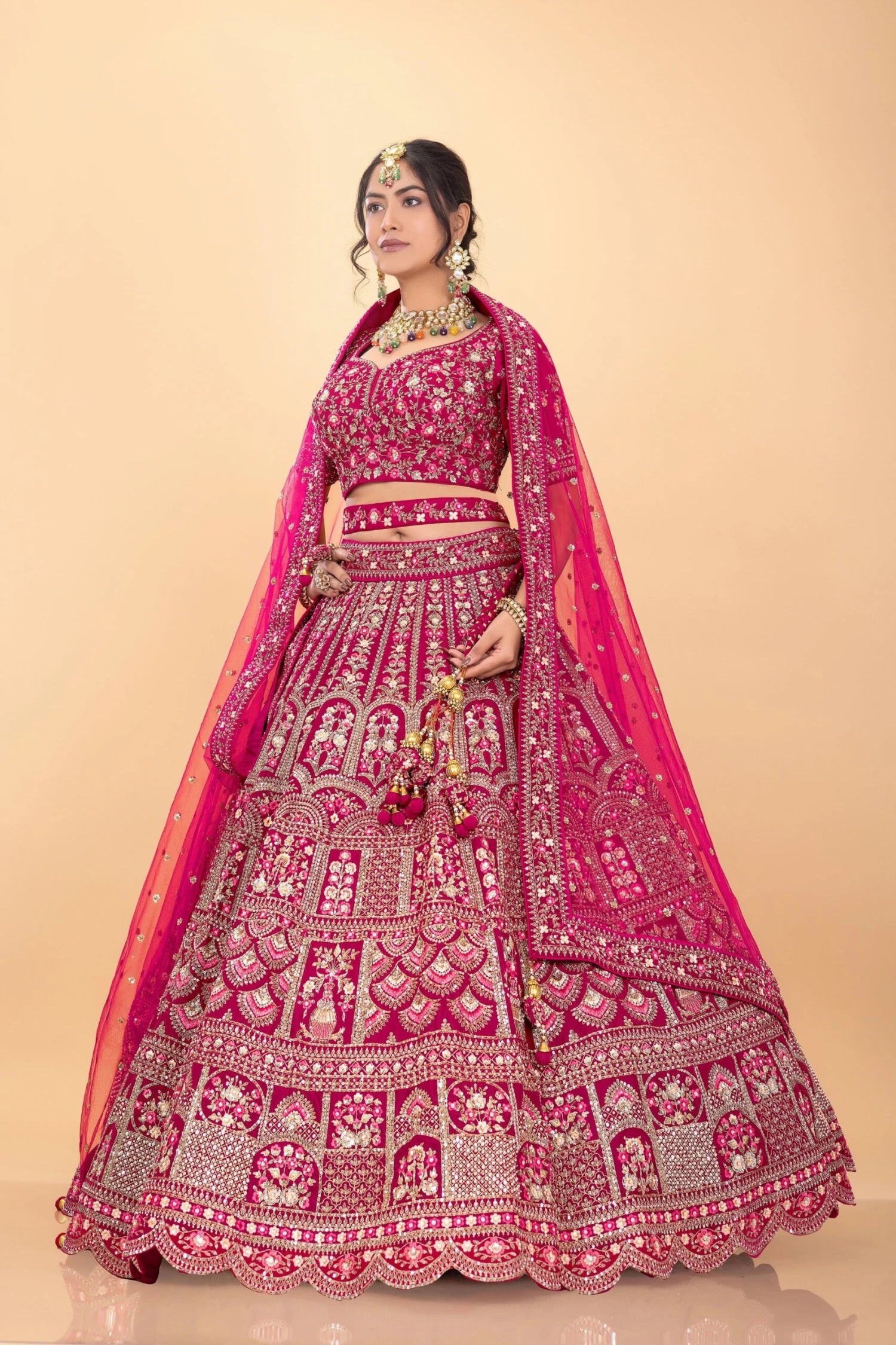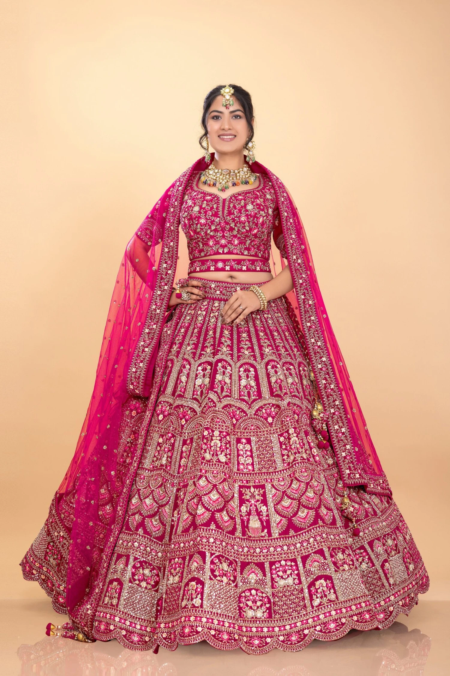 Designer Rani Pink Bridal Lehenga Choli With Embroidery & Handwork