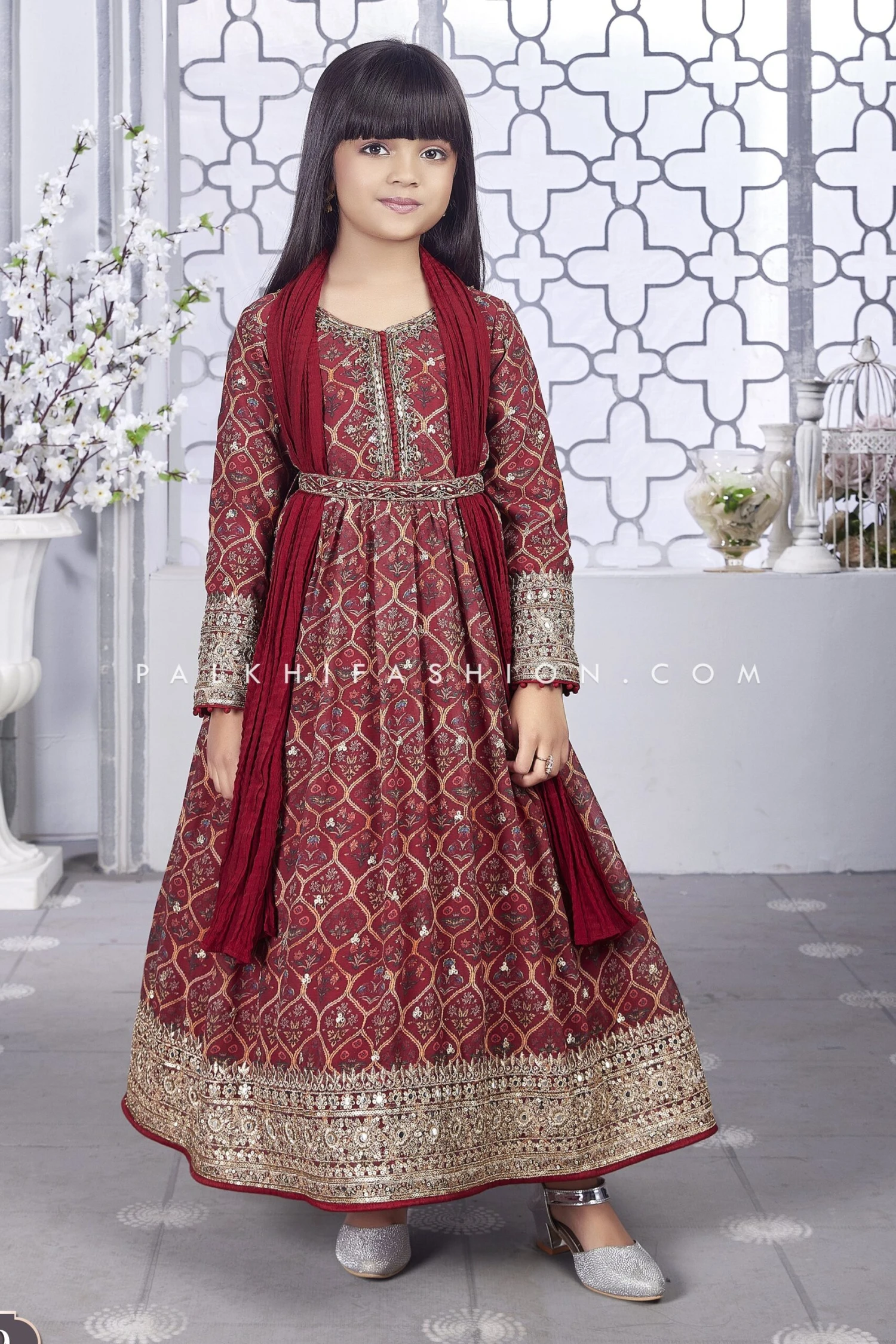 Irresistible Maroon Girls Outfit With Elegant Work