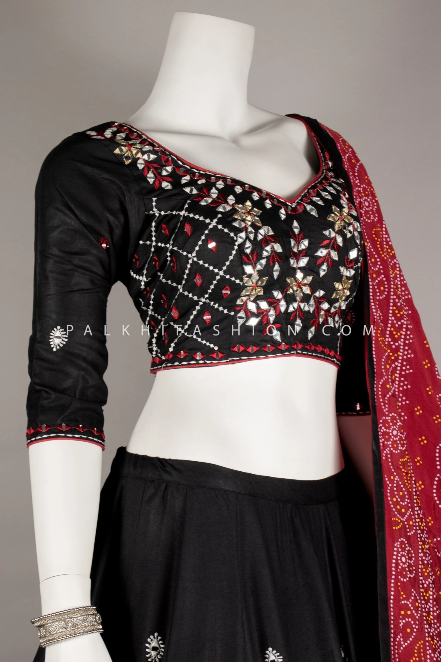 Kutch Combo: Ajrakh & Bandhani Black Navratri Chaniya Choli – Palkhi Fashion