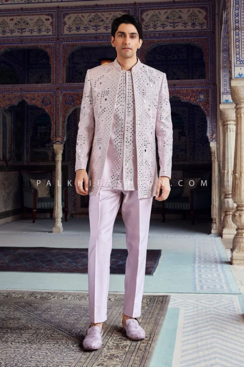 Pastel Grey Kurta Pajama Set With Elegant Work – Palkhi Fashion
