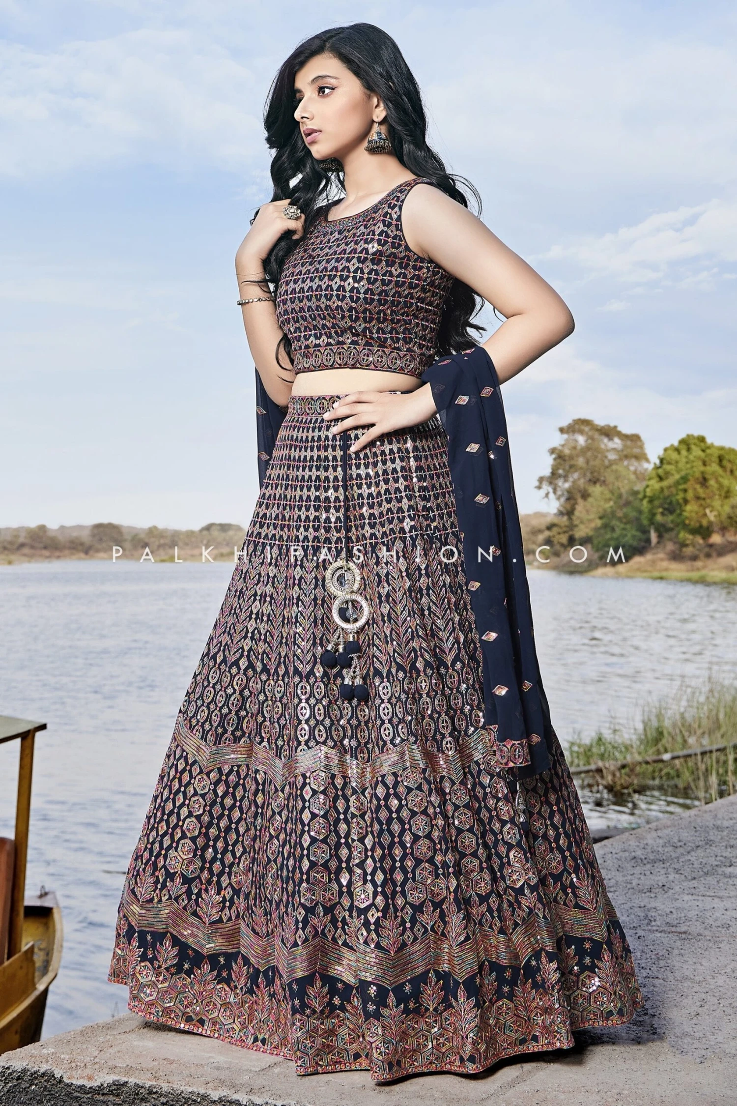 Navy Blue Girl Designer Lehenga Choli With Appealing Work