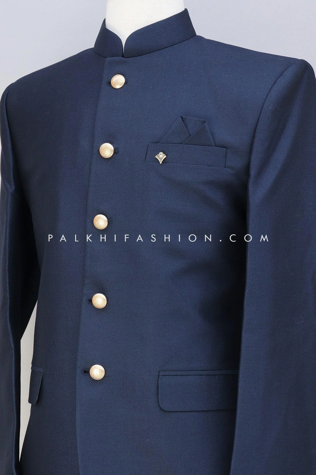 Navy Blue Soft Silk Jodhpuri Suit From Palkhi Fashion