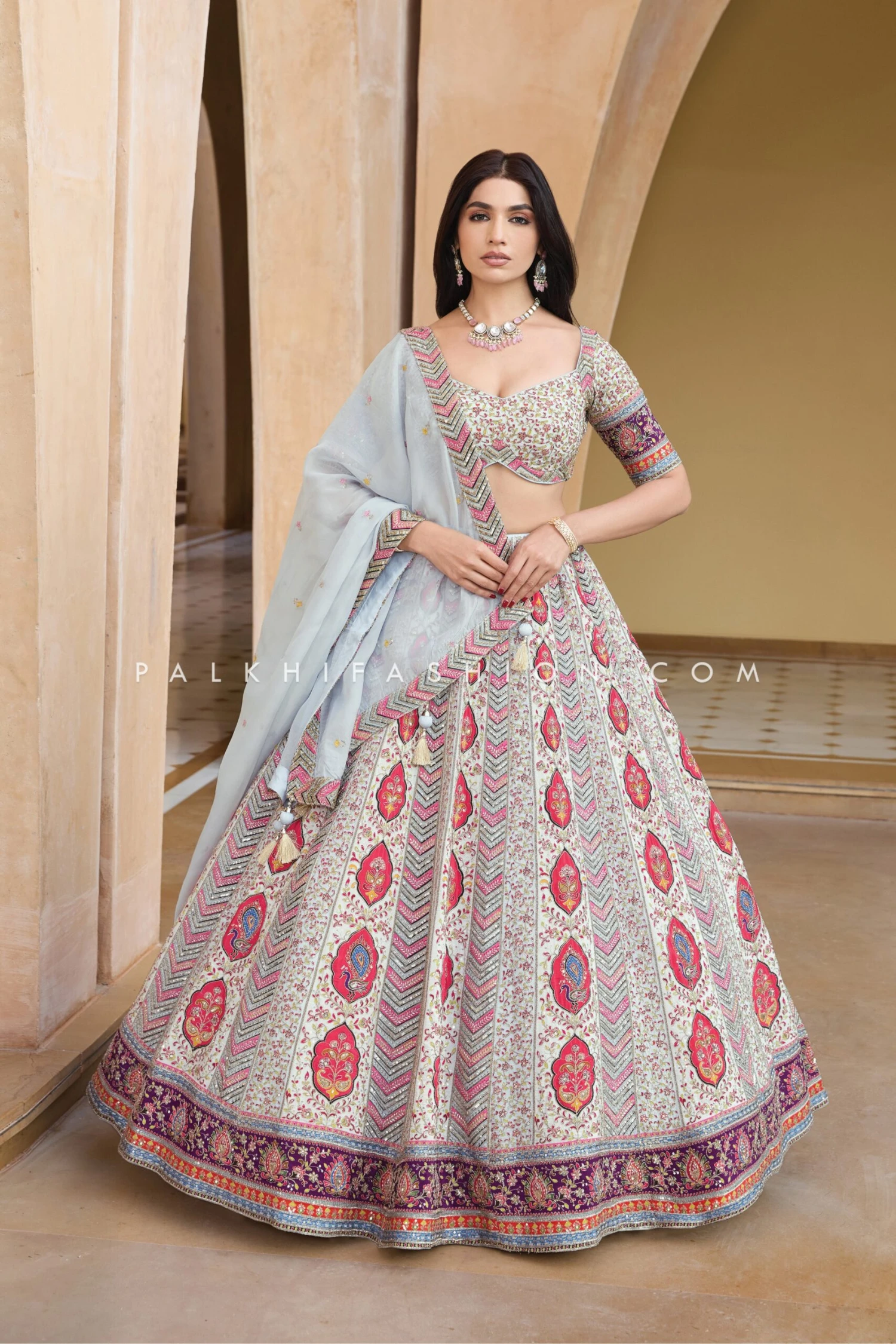 Off-white Designer Lehenga Choli With Hand Embroidery – Palkhi Fashion
