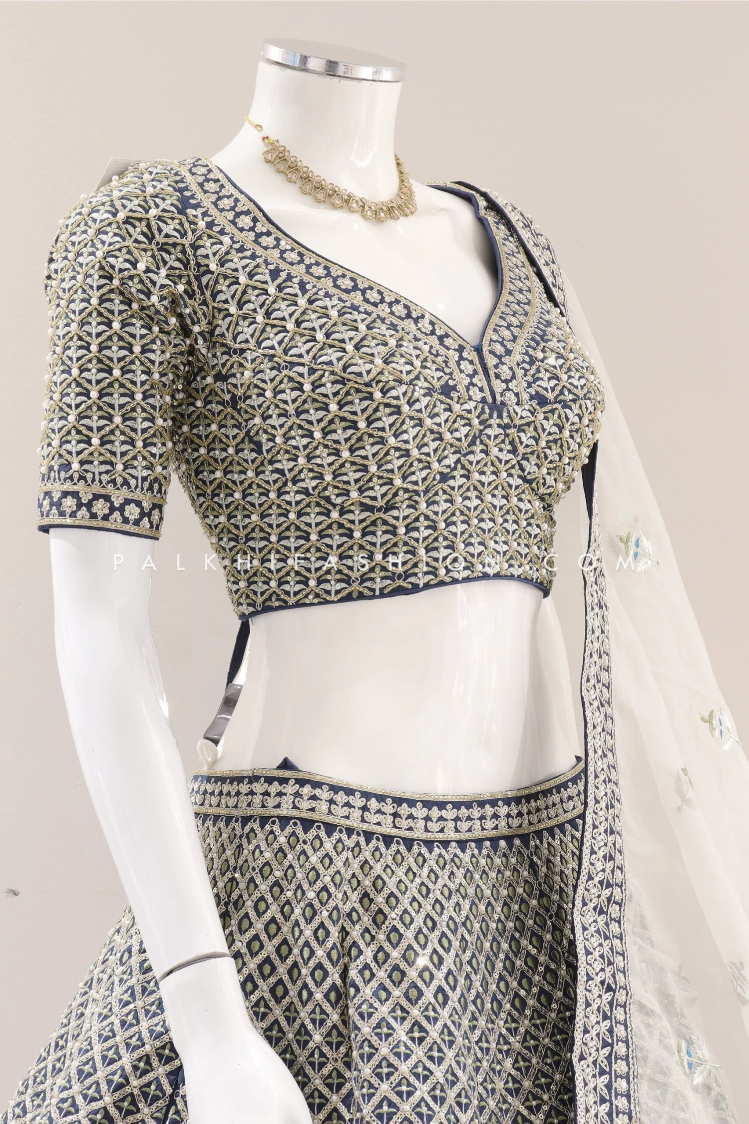 Indulge in the regal charm of this teal blue pure silk designer lehenga choli from Palkhi Fashion, meticulously crafted with a blend of intricate embroidery work, resham, petite stone embellishments, cutdana, and fine handwork. The rich texture and elegant design of the lehenga and blouse make this outfit a standout for any grand occasion. Paired with a contrasting organza silk dupatta, adorned with delicate embroidery and stone work, this ensemble exudes sophistication and grace. Ideal for weddings, festive occasions, and special events, this designer lehenga choli offers a perfect balance of traditional craftsmanship and modern style.